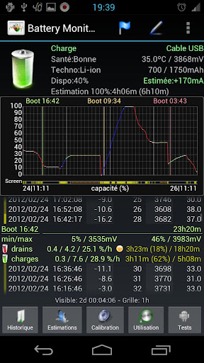 The most complete tool : Shows historical data (%, mA, mW, mV ), calculates estimated run-times aging, helps calibrate battery run-time.